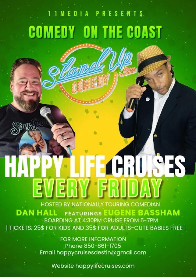 Looking for something different to do in Destin? This top-rated comedy cruise brings together two of the region's funniest performers for an evening you won't soon forget. Dan Hall and Eugene Bassham take the stage on our floating venue while you cruise the scenic waters of Destin Harbor. It's comedy meets coastal charm, and trust me – there's nothing quite like laughing until your sides hurt while watching the sun set over the Emerald Coast. Happy Life Cruises has been putting together these special entertainment nights for years, and this particular show has become a customer favorite for good reason.