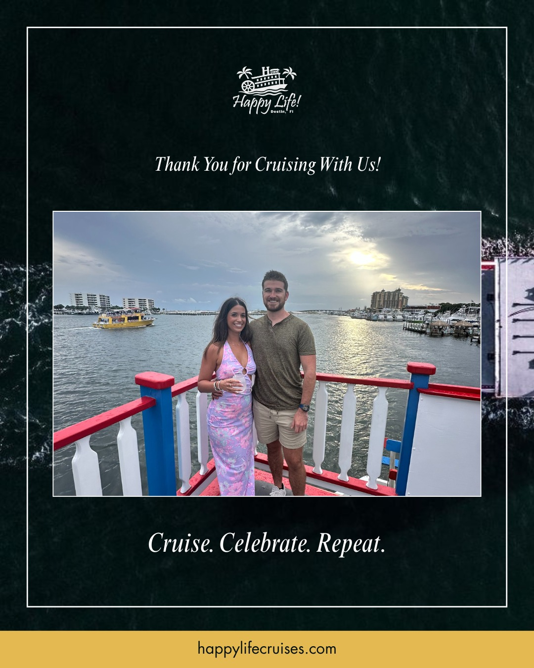 Step aboard Happy Life Cruises' comfortable riverboat for a relaxing evening cruise along Destin Harbor. This spacious vessel features plenty of seating areas where you can settle in and watch the sun dip below the horizon while gentle music plays in the background. As you glide past the popular Crab Island and through HarborWalk Village, you'll have panoramic views of the coastline and harbor. The boat's open design lets you feel the Gulf breeze while staying comfortable throughout your journey. Perfect for a peaceful night on the water, whether you're celebrating with someone special or just looking to unwind. On certain evenings, you might even catch the fireworks display lighting up the harbor sky from your front-row seat on the water.